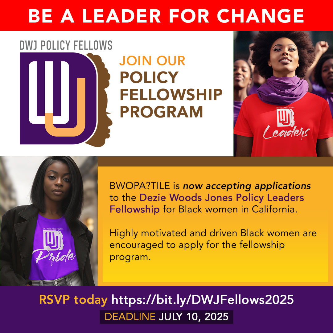 The BWOPA/TILE California's Dezie Woods Jones (DWJ) Policy Fellowship is now open for rolling applications, after July 10th.